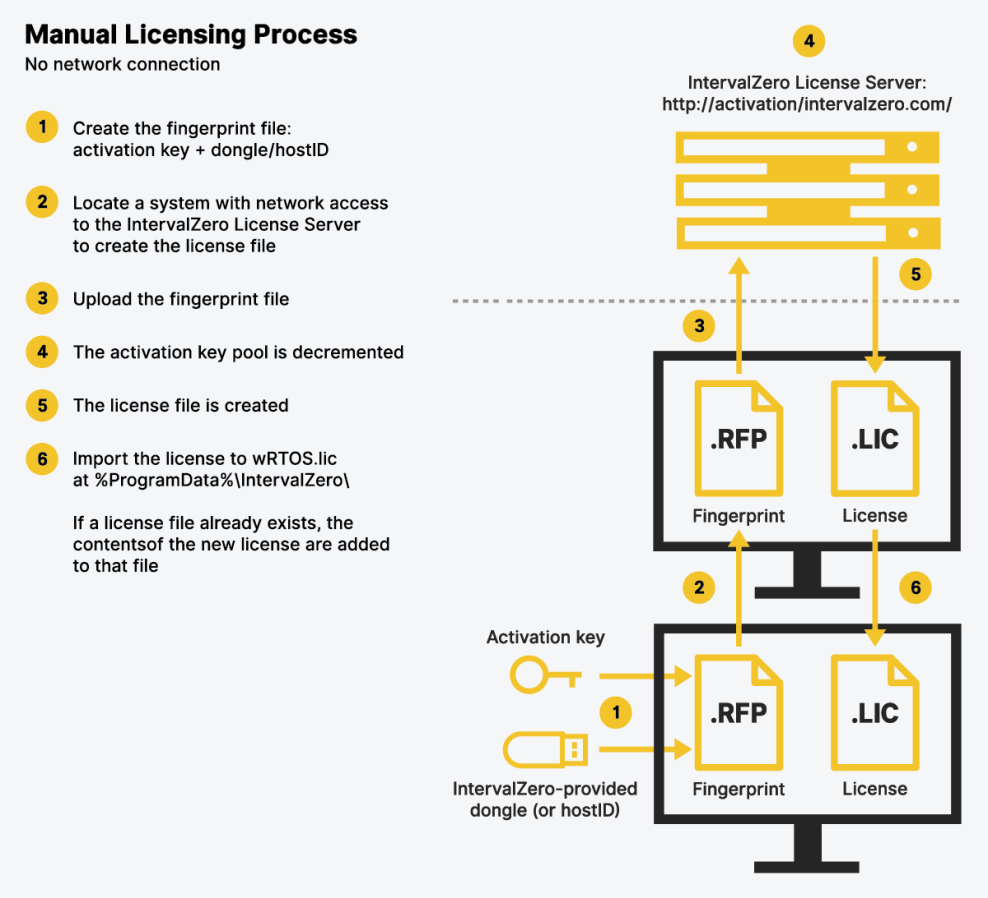 When there is no network connection, there are additional steps that must be completed manually, as outlined in the below diagram.