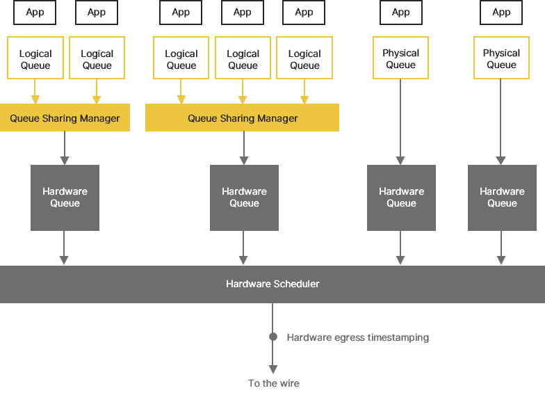 - The Logical Queue interface allows multiple applications to share the same Hardware Transmit Queue through a logical queue abstraction.