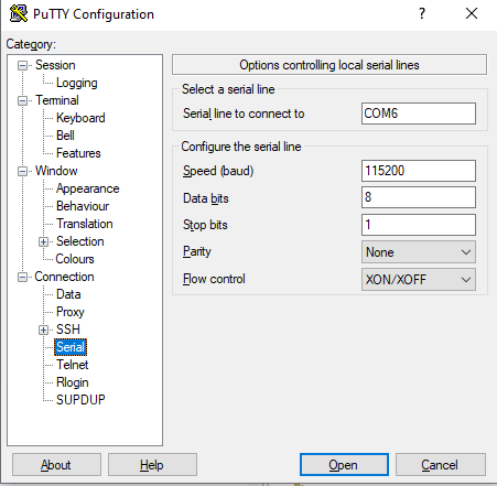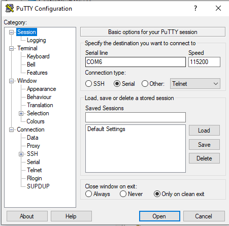 Configuring PuTTY for Serial Connections