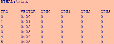 Lists interrupt information per CPU. Example: