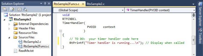 - Open the RtxSample2Funcsource file and add a line to display status when the