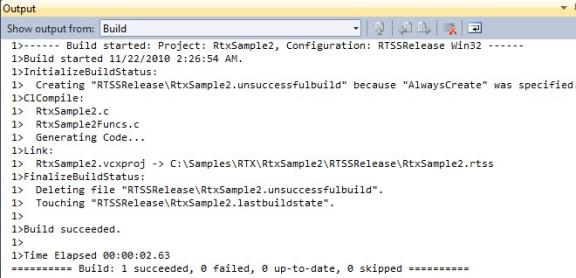 - Set the Solution Configuration so that the program will be built as an RTSSRelease executable.
