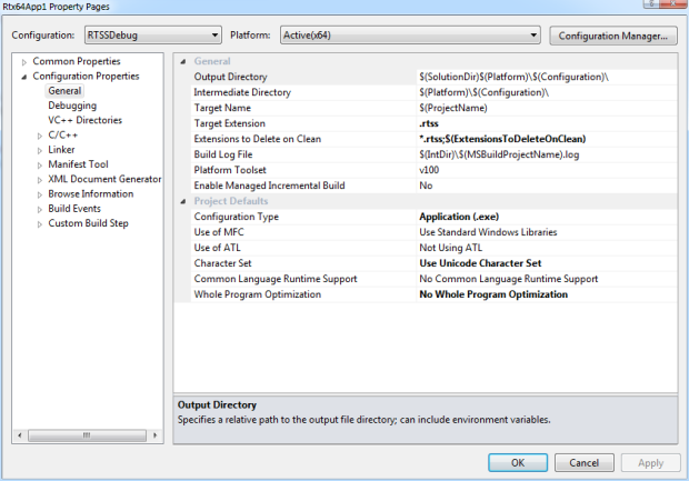 NOTE: If you do not have a valid SDK license for the version of RTX64 included in your Visual Studio project settings the RtssRelease and RtssDebug configuration builds will fail. (The RTSS binary is still generated, but it will not be loadable and runnable).