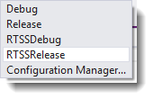 1. Set the Solution Configuration so that the program will be built as an RTSSRelease executable.
