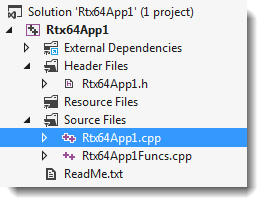 Upon completion of the RTX64 Application template there are a few things worth noticing: