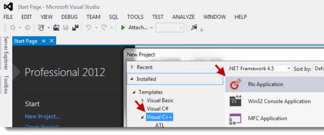 RTX64 provides two wizards in the Templates/Visual C++ branch in the supported versions of Microsoft Visual Studio: