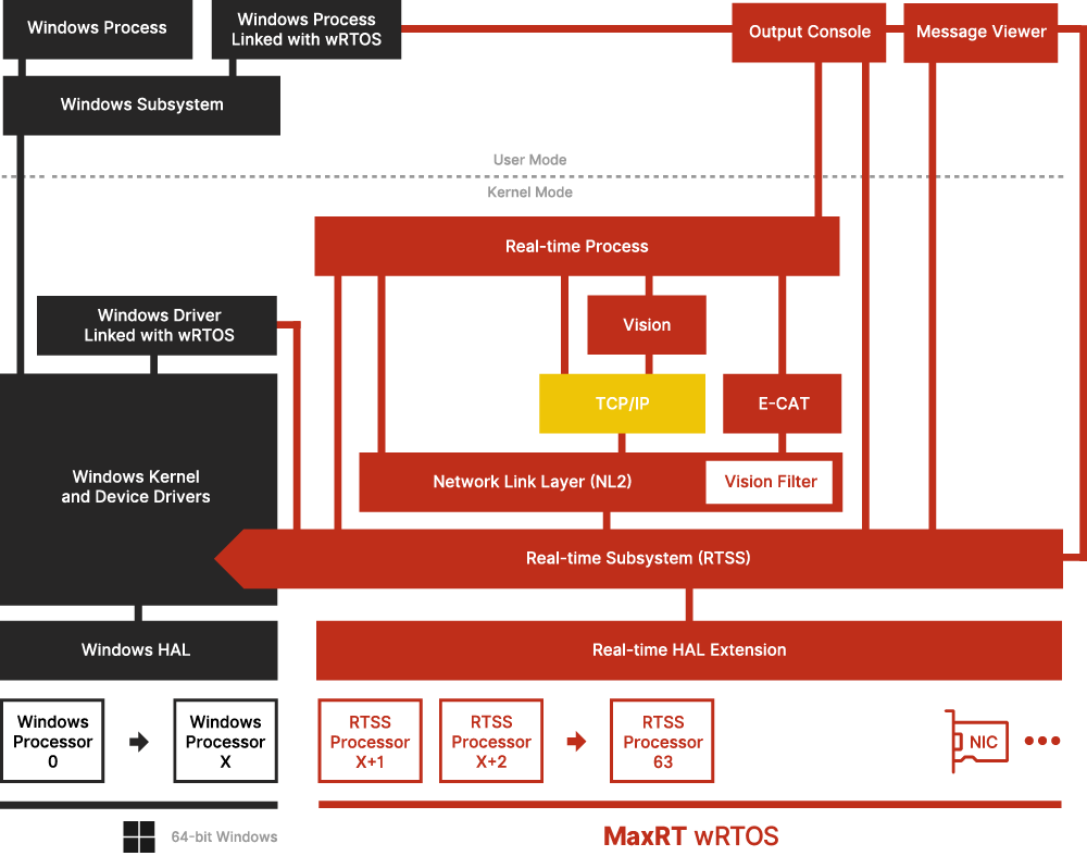 wRTOS provides processing and networking capability through a TCP/IP Stack within the RTSS environment. To maximize portability between wRTOS and Windows, wRTOS provides an API that conforms to a subset of the functions defined in the Windows Sockets 2.0 (Winsock) specification for Windows. For more information, see Using the Winsock API.