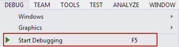 - To start debugging, select Start Debugging from the Debug pull-down menu, or press the F5 key.