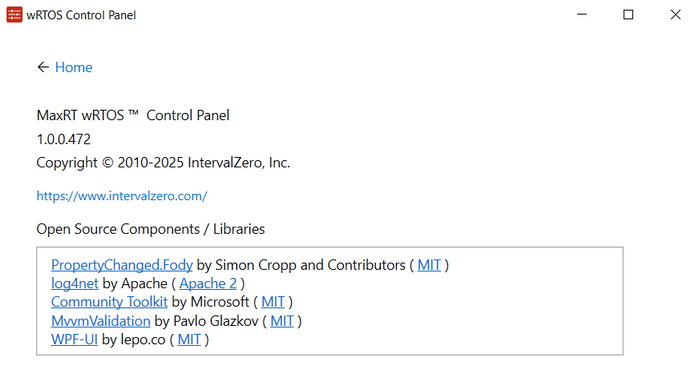 In the Start menu, navigate to MaxRT wRTOS 1.0 Runtime and select wRTOS Control Panel.