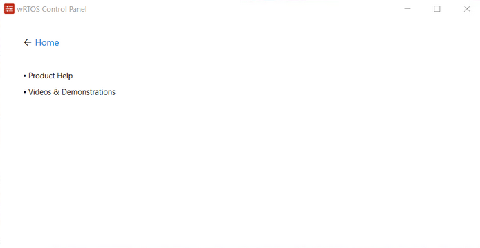 The above image illustrates that no wRTOS components are displayed on wRTOS Control Panel when none are installed and selected for display.