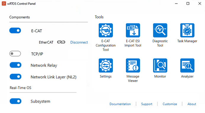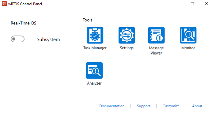 Note: wRTOS Control Panel only displays installed and licensed wRTOS components. Ensure that the components you wish to control are installed and licensed.