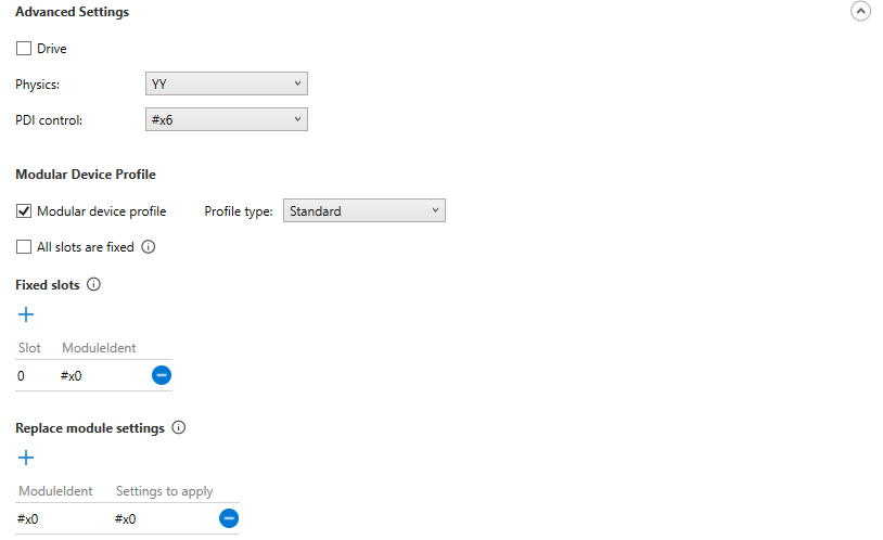 Add icon to add a slot and specify a ModuleIdent identifier for this slot. The E-CAT component will not scan these slots when connecting to SubDevices. - Replace module settings: Use the